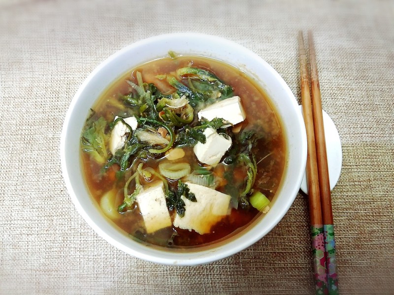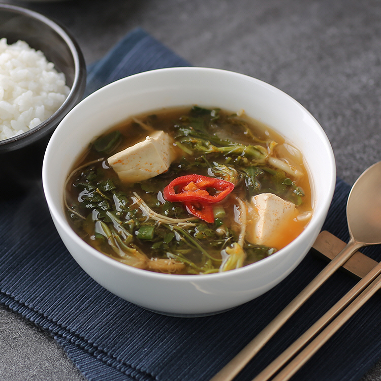 준비물 : 냉이 50g, 두부 1/2모, 된장 2큰술, 다진마늘 1큰술, 쌀뜨물, 멸치가루, 대파, 청양고추 1~2개